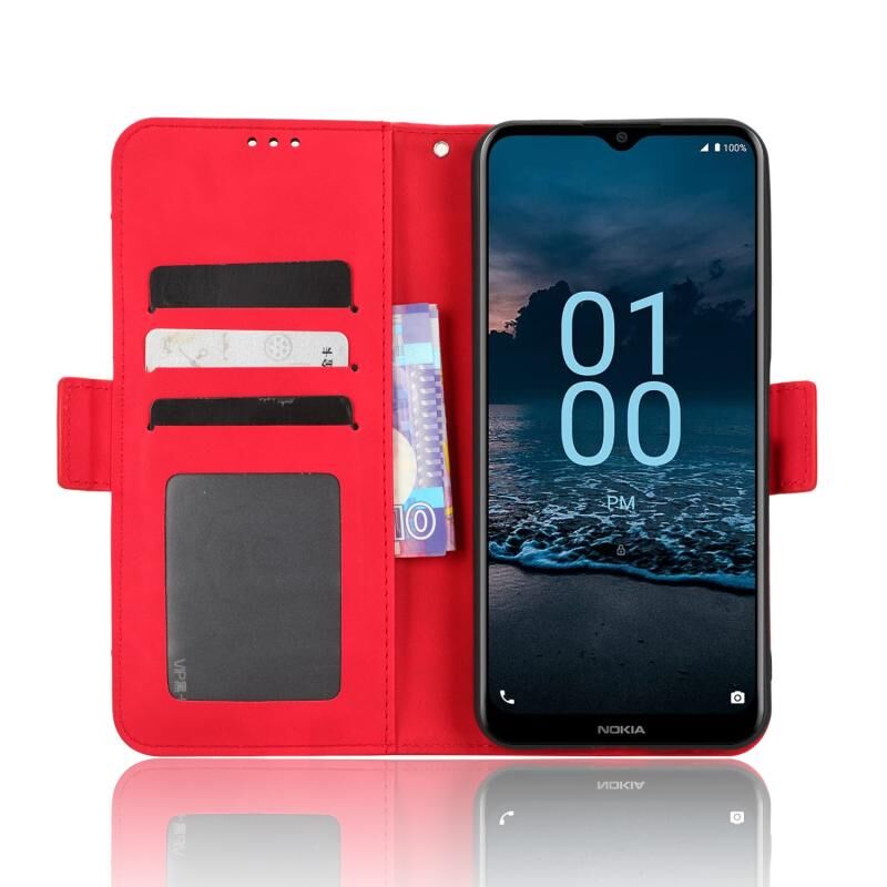 Για το Nokia G100 δέρμα αίσθηση μοσχάρι υφή κάρτα υποδοχές δερμάτινη θήκη τηλεφώνου (κόκκινο)
