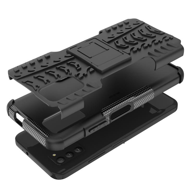 Θήκη κινητού τηλεφώνου για Nokia G100 με υφή ελαστικού, κατασκευασμένη από TPU + PC με βάση στήριξης (Πορτοκαλί)