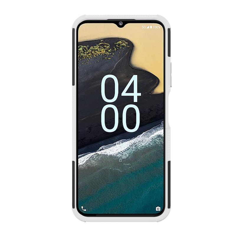 Θήκη κινητού τηλεφώνου για Nokia G100 με υφή ελαστικού, κατασκευασμένη από TPU + PC με βάση στήριξης (Πορτοκαλί)