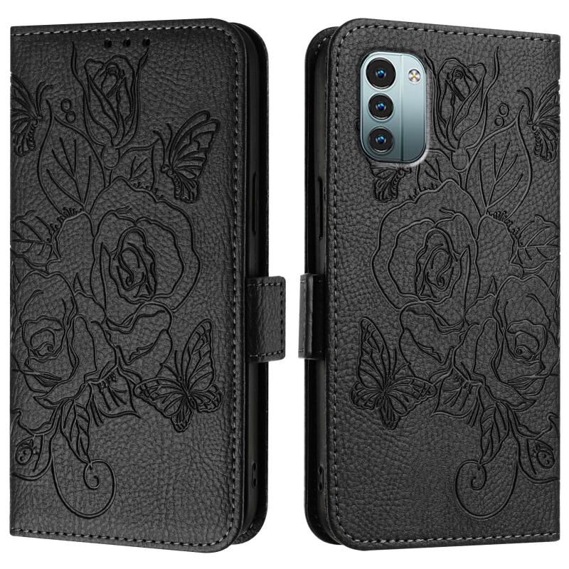 For Nokia G11 4G / G21 4G Embossed Rose RFID Anti-theft Leather Phone Case(Black)
