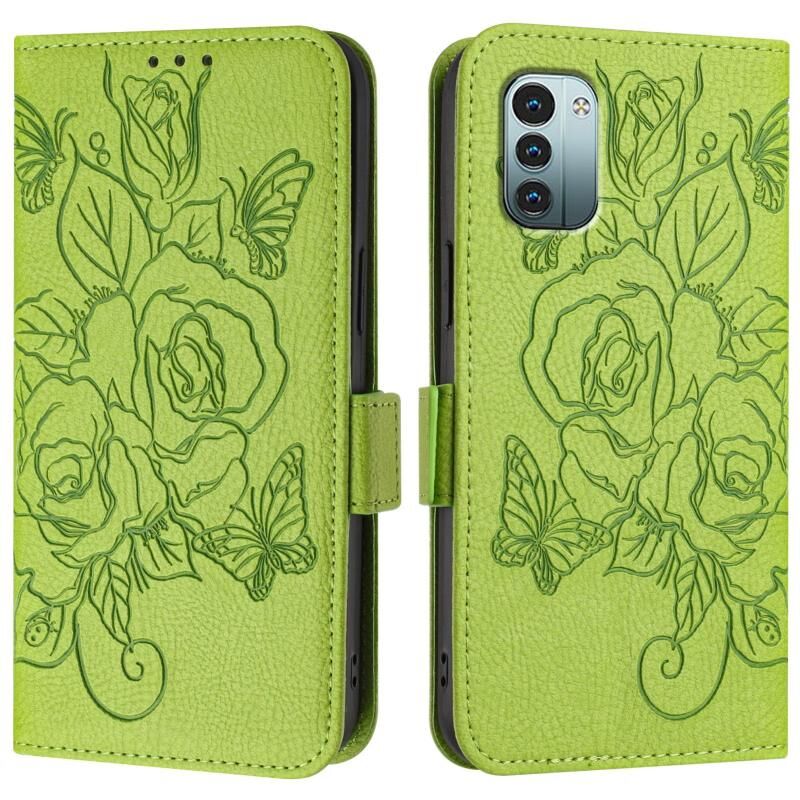 For Nokia G11 4G / G21 4G Embossed Rose RFID Anti-theft Leather Phone Case(Green)