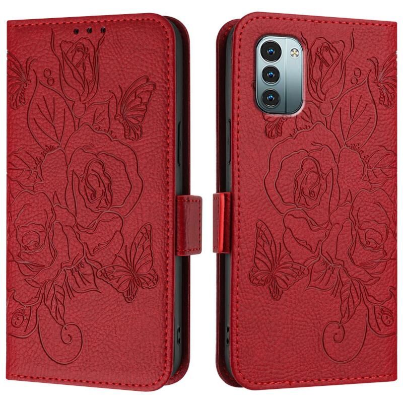 For Nokia G11 4G / G21 4G Embossed Rose RFID Anti-theft Leather Phone Case(Red)