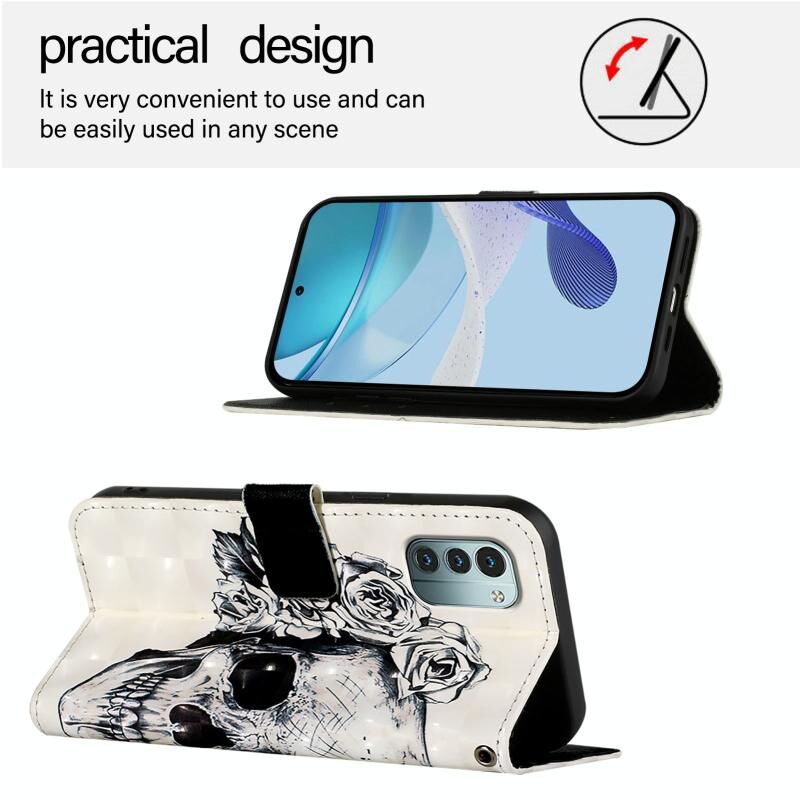 Θήκη τηλεφώνου από δέρμα με οριζόντια αναδίπλωση και τρισδιάστατη ζωγραφική για Nokia G11 / G21 (Κρανίο)