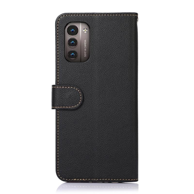 Θήκη κινητού τηλεφώνου Nokia G11 / G21 4G KHAZNEH με δερμάτινη υφή Litchi και προστασία RFID (Μαύρο)