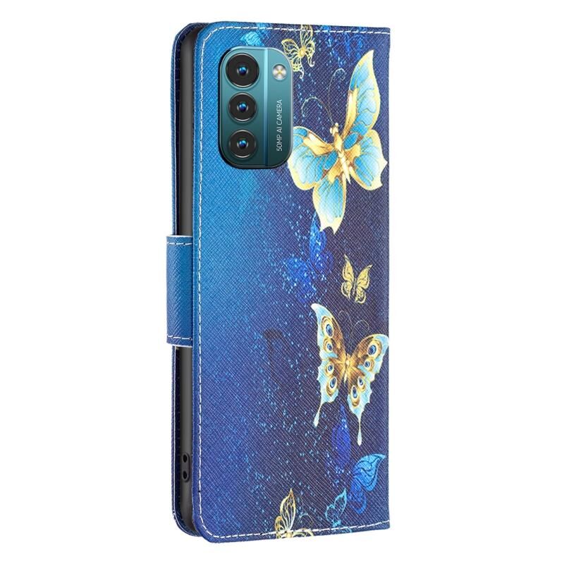 Θήκη τηλεφώνου από δέρμα με οριζόντιο άνοιγμα και πολύχρωμο σχέδιο (Μπλε πεταλούδες) για Nokia G11 / G21.