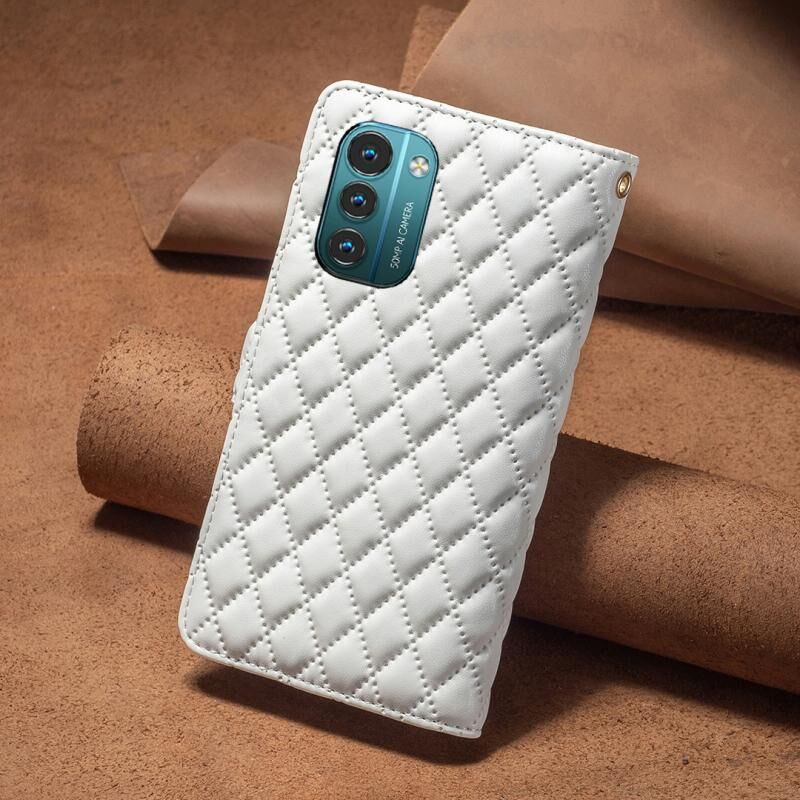 Για Nokia G11 / G21 Diamond Lattice φερμουάρ πορτοφόλι δέρμα Flip υπόθεση τηλεφώνου (λευκό)
