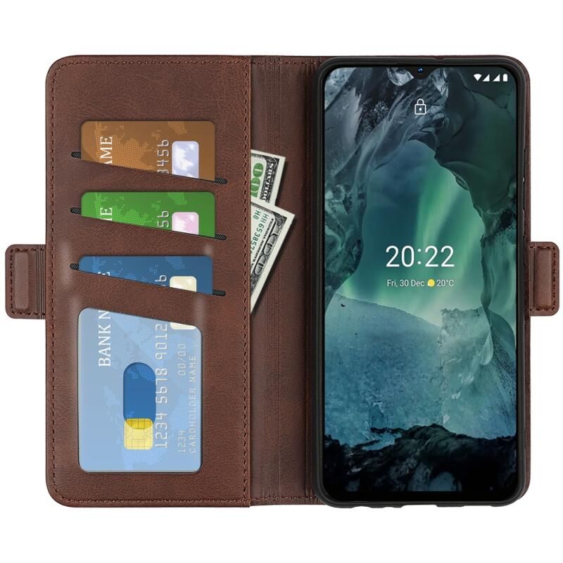 Για Nokia G11/G21 Διπλής όψης μαγνητική πόρπη δερμάτινη θήκη τηλεφώνου (καφέ)