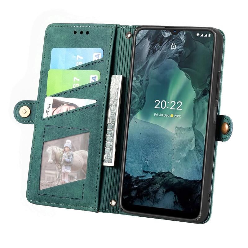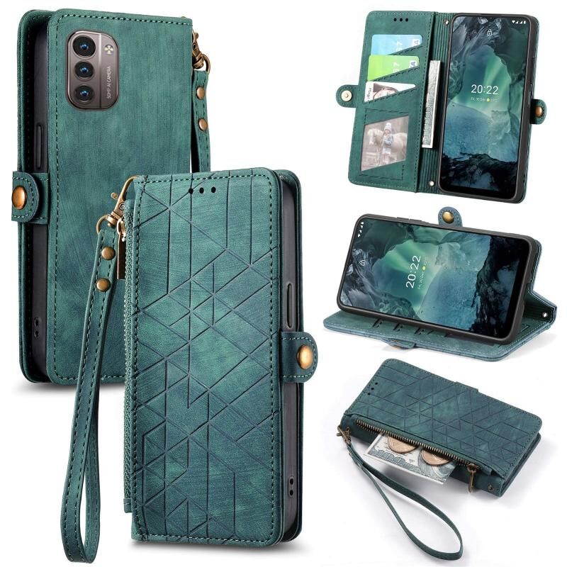 Για Nokia G11/G21 Γεωμετρική φερμουάρ πορτοφόλι πλευρά πόρπη δερμάτινη θήκη τηλεφώνου (πράσινο)