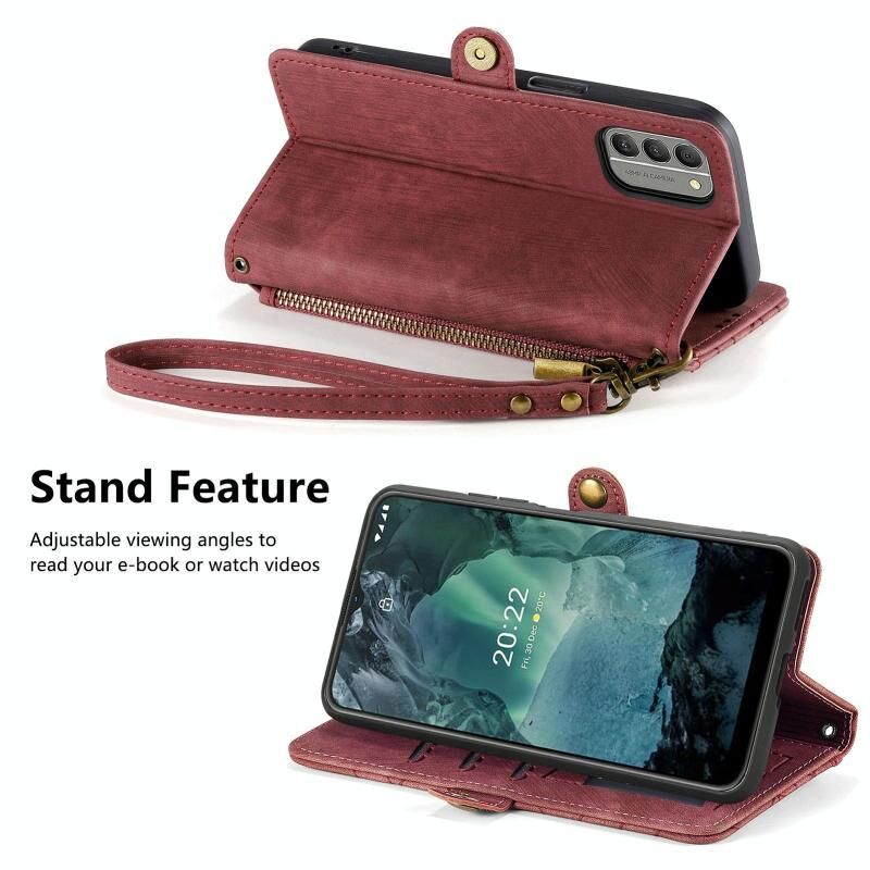 Για Nokia G11/G21 Γεωμετρική φερμουάρ πορτοφόλι πλευρά πόρπη δερμάτινη θήκη τηλεφώνου (κόκκινο)
