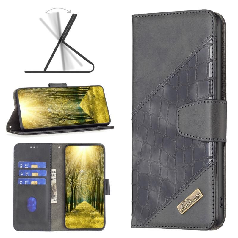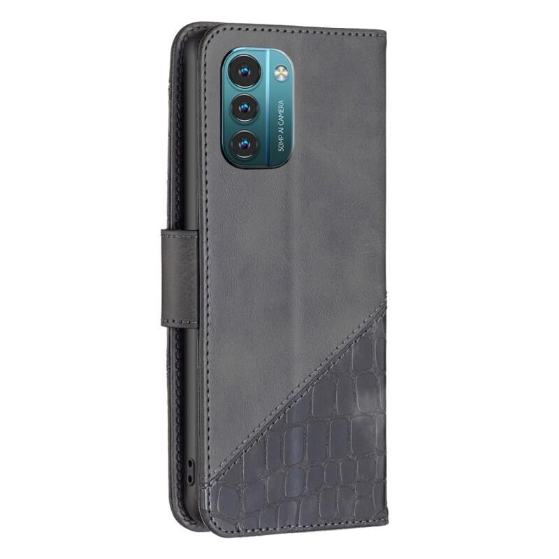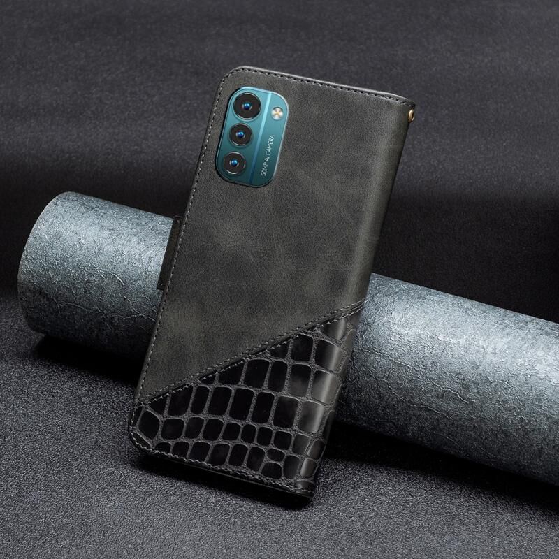 Θήκη τηλεφώνου από δερματίνη PU με υφή κροκόδειλου, σε ταιριαστό χρώμα για Nokia G11 / G21 (Μαύρο)