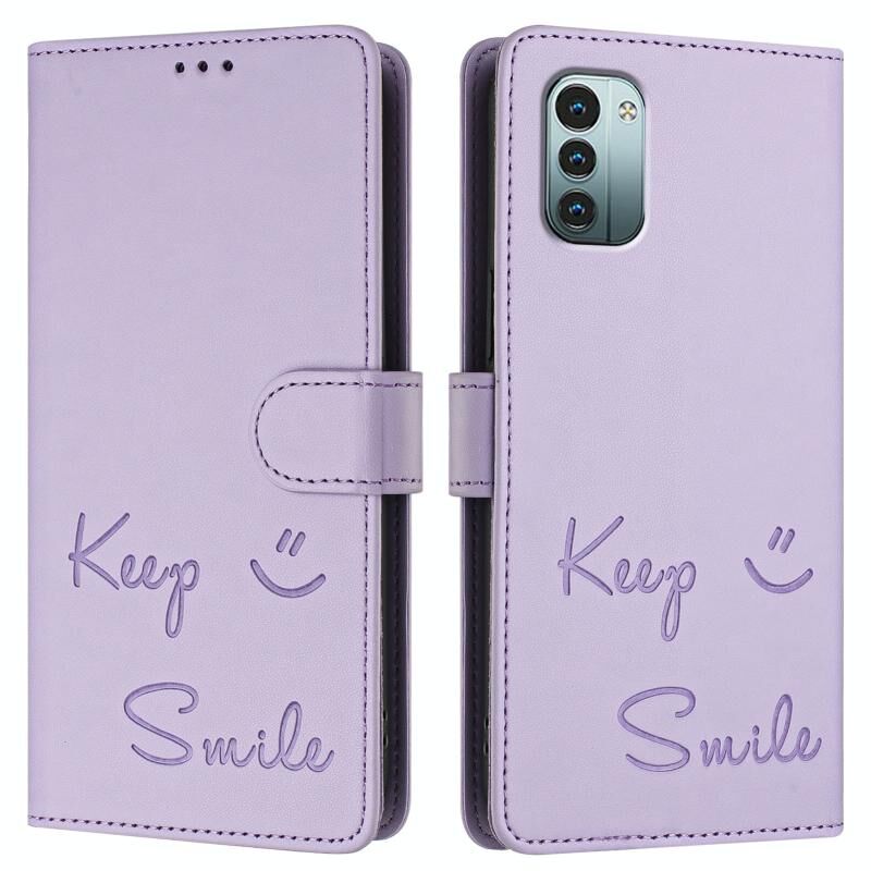 Θήκη τηλεφώνου από δέρμα με ανάγλυφο χαμόγελο RFID για Nokia G11 / G21 (Μέντας Πράσινο)