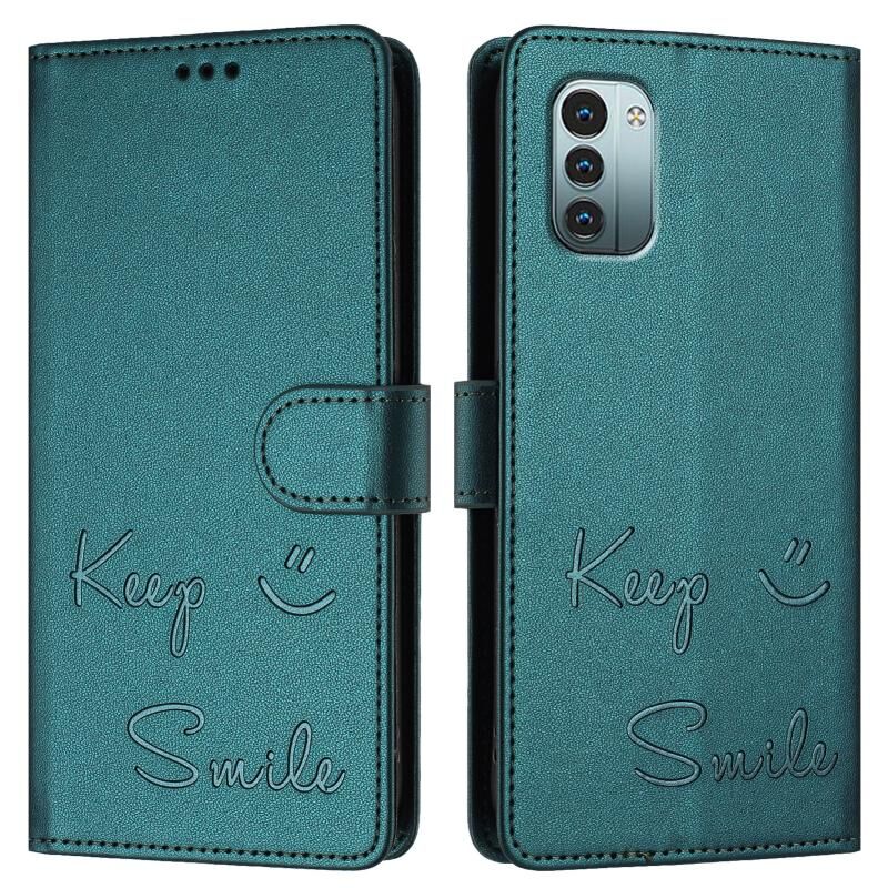 Θήκη τηλεφώνου από δέρμα με ανάγλυφο χαμόγελο RFID για Nokia G11 / G21 (Μέντας Πράσινο)