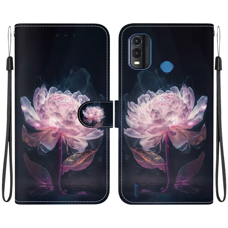 Θήκη τηλεφώνου Nokia G11 Plus με κρυστάλλινη υφή, πολύχρωμο σχέδιο από δέρμα (Μωβ Παιώνια)