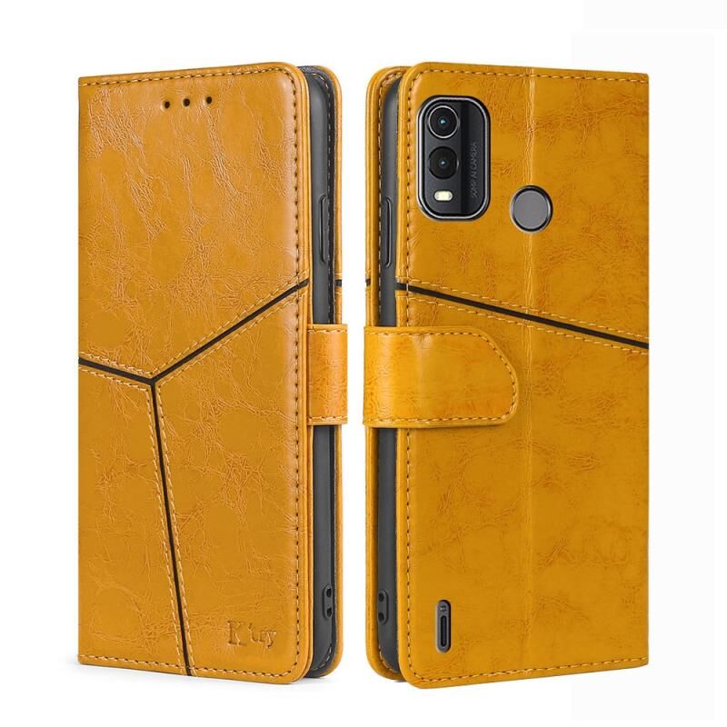 Για Nokia G11 Plus Γεωμετρική ραφή δερμάτινη θήκη τηλεφώνου (κίτρινο)