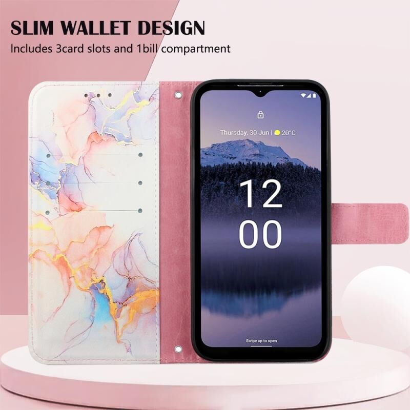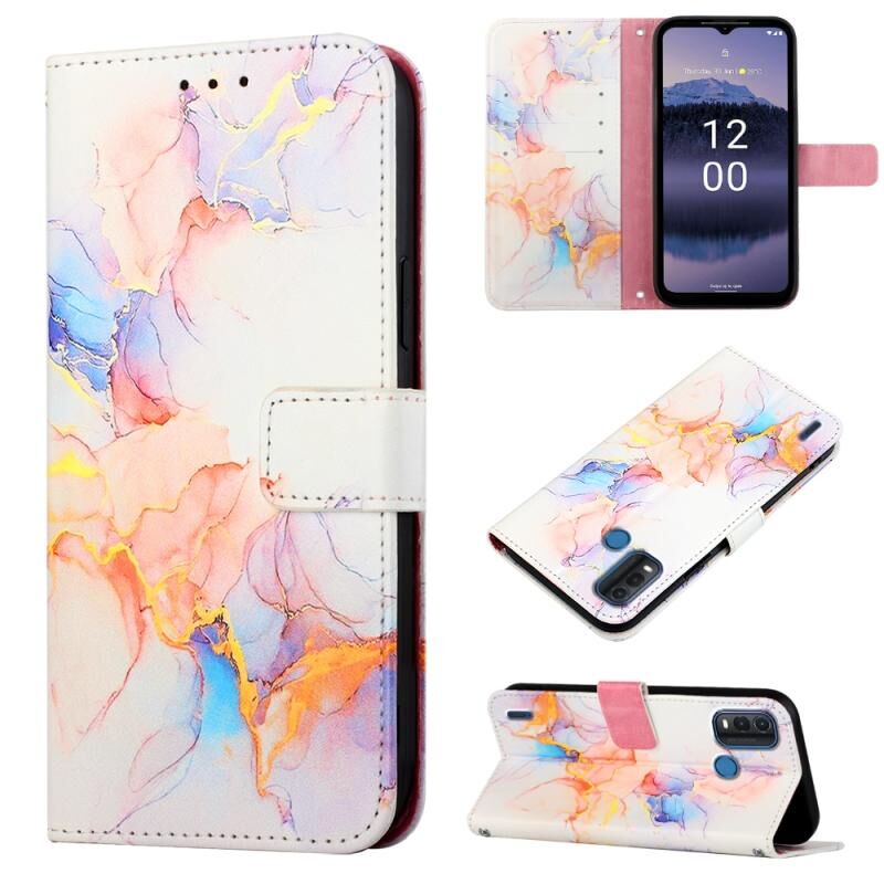 Θήκη τηλεφώνου από δέρμα με σχέδιο μάρμαρου για Nokia G11 Plus PT003 (Ροζ Μωβ Χρυσό LS001)