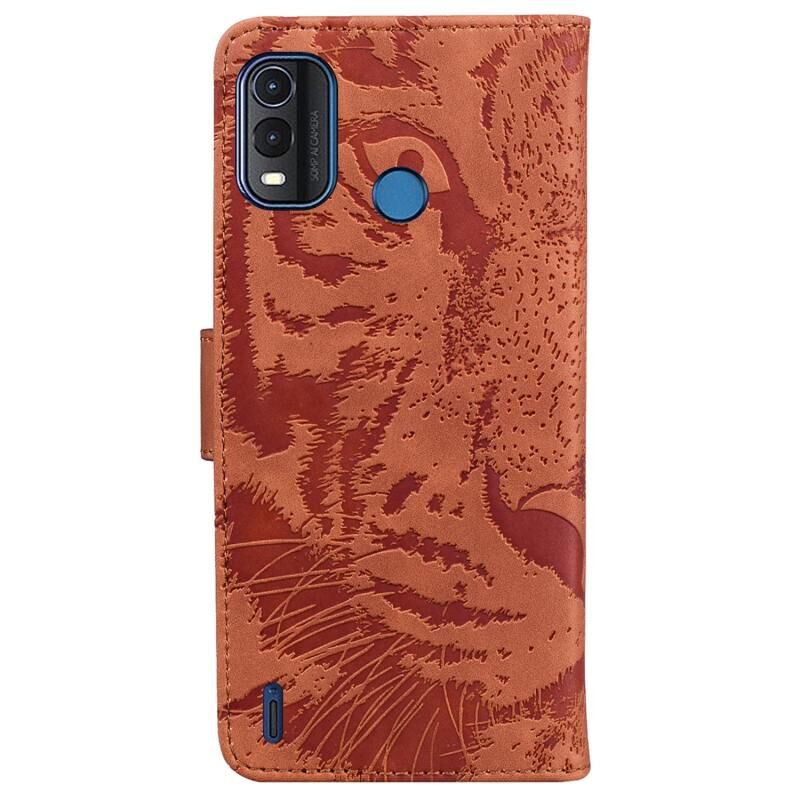 Θήκη τηλεφώνου από δέρμα με οριζόντιο άνοιγμα για Nokia G11 Plus με μοτίβο ανάγλυφου τίγρη (Μαύρο)