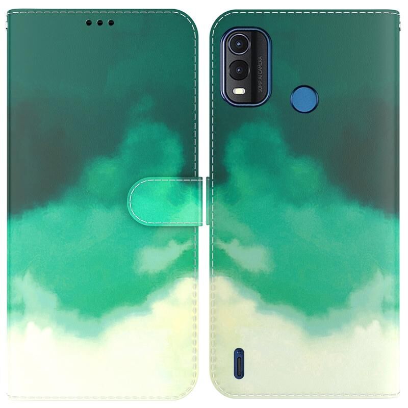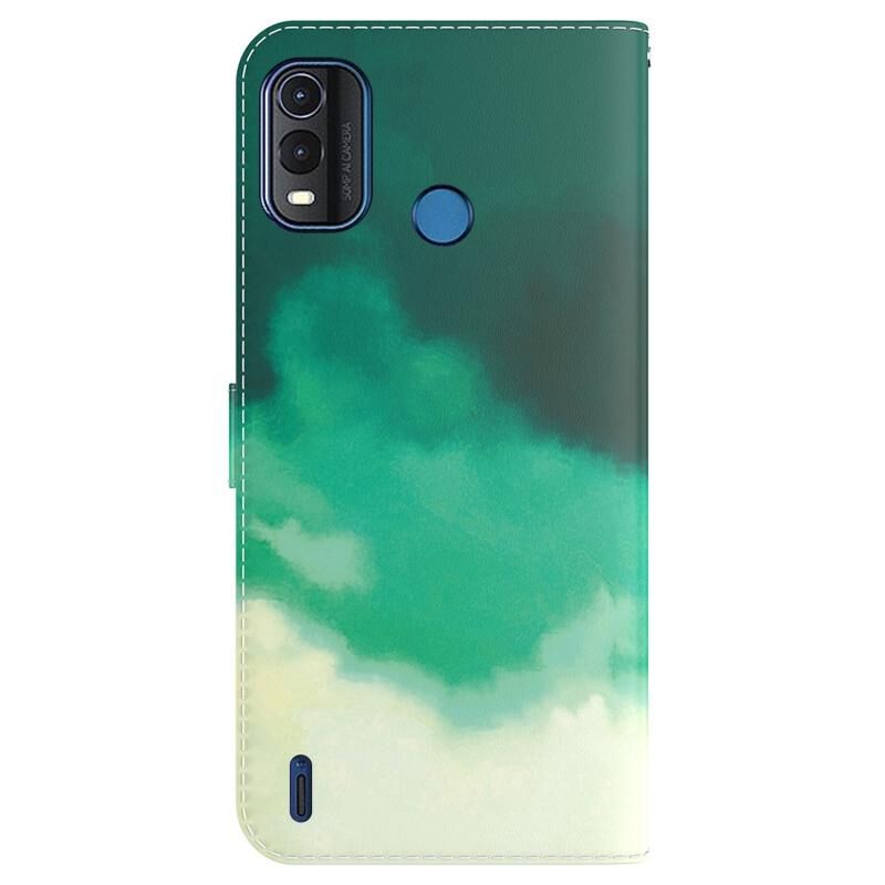Για το Nokia G11 Plus Υδατογραφία μοτίβο οριζόντια Flip δέρμα τηλέφωνο υπόθεση (Cyan Green)