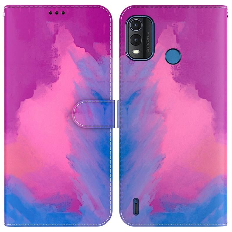 Για το Nokia G11 Plus Υδατογραφία μοτίβο οριζόντια Flip δέρμα τηλέφωνο υπόθεση (μοβ κόκκινο)