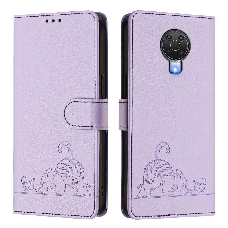 Θήκη τηλεφώνου από δέρμα με ανάγλυφο σχέδιο Cat Rat για Nokia G20 / G10 με κορδόνι (Μέντας Πράσινο)