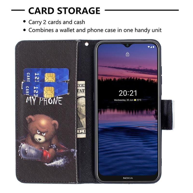 Θήκη δέρματος οριζόντιας αναδίπλωσης με σχέδιο πολύχρωμης ζωγραφικής για Nokia G20 / G10 με βάση & υποδοχές καρτών & πορτοφόλι (Αρκούδα)