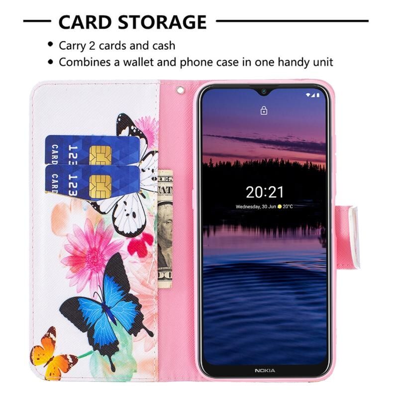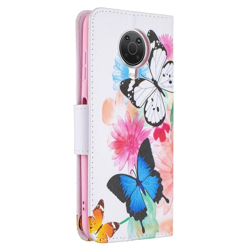 Θήκη δέρματος οριζόντιας αναδίπλωσης με σχέδιο πολύχρωμης ζωγραφικής για Nokia G20 / G10 με βάση & υποδοχές καρτών & πορτοφόλι (Πεταλούδες)