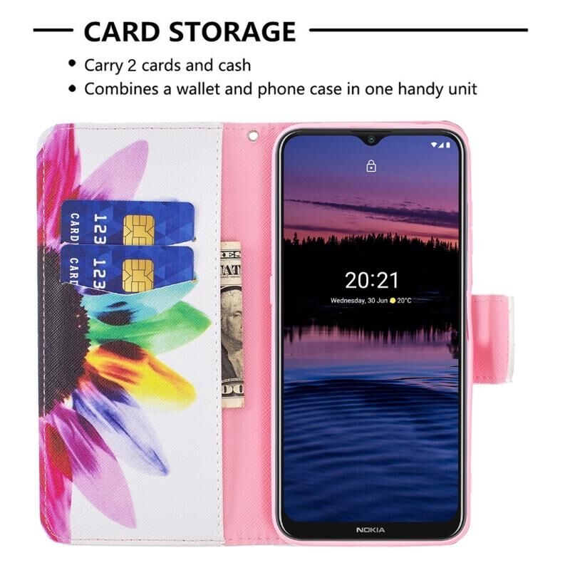 Θήκη δέρματος οριζόντιας αναδίπλωσης με σχέδιο πολύχρωμης ζωγραφικής για Nokia G20 / G10 με βάση & υποδοχές καρτών & πορτοφόλι (Ηλίανθος)