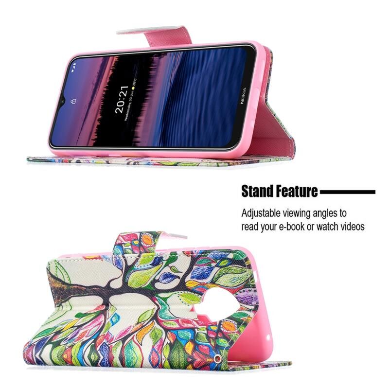 Θήκη δέρματος οριζόντιας αναδίπλωσης με σχέδιο έγχρωμης ζωγραφικής για Nokia G20 / G10 με βάση & υποδοχές καρτών & πορτοφόλι (Δέντρο της Ζωής)