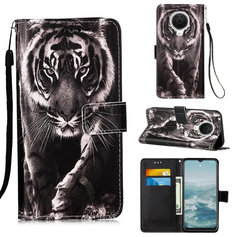Θήκη τηλεφώνου από δέρμα με απλή ύφανση και έγχρωμο σχέδιο για Nokia G20 / G10 (Μαύρη Τίγρη)