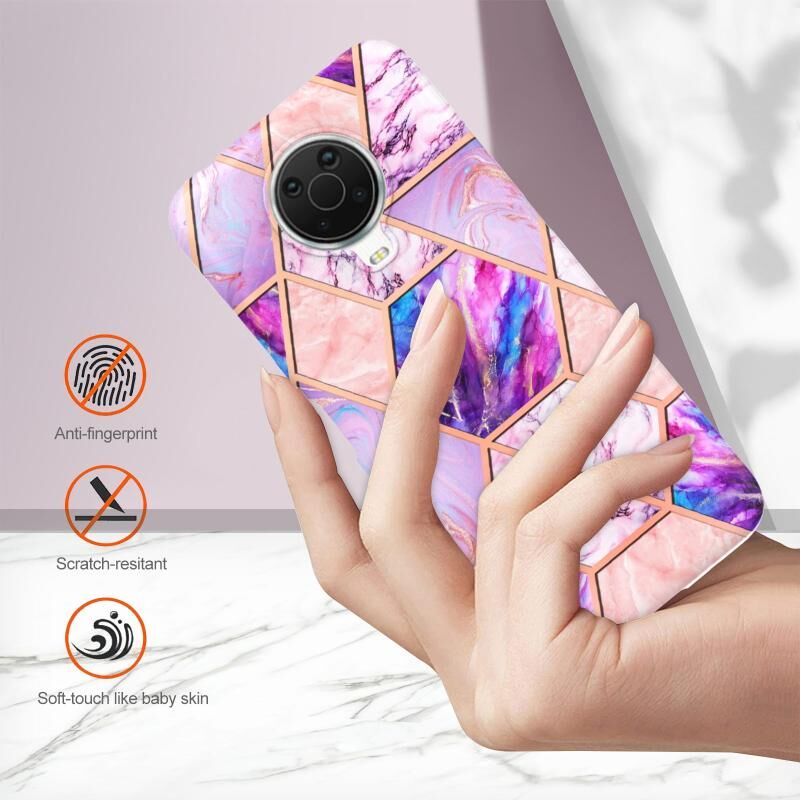 Θήκη κινητού τηλεφώνου Nokia G20 / G10 με ηλεκτρολυτική επιμετάλλωση IMD, συνδυασμό μαρμάρου και TPU (Σκούρο Μωβ)