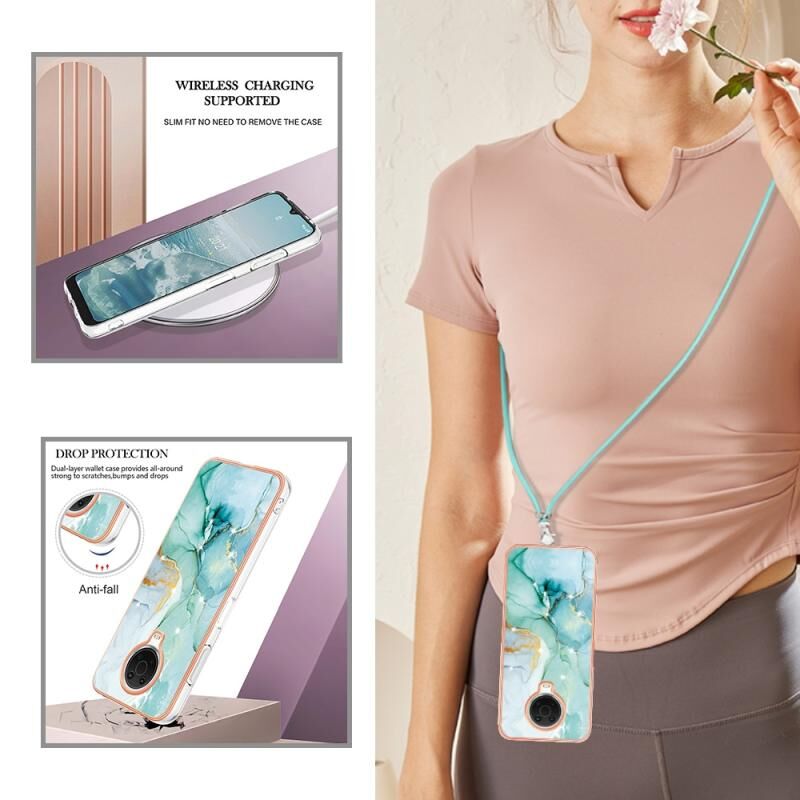 Θήκη κινητού τηλεφώνου TPU με σχέδιο μαρμάρου και ηλεκτρολυτική επικάλυψη για Nokia G20 / G10 με κορδόνι (Μωβ 001)