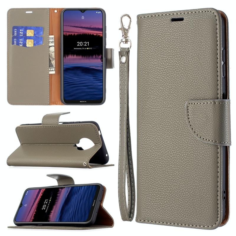 For Nokia G20 / G10 Litchi Texture Pure Color Horizontal Flip Leather Case with Holder & Card Slots & Wallet & Lanyard(Grey)