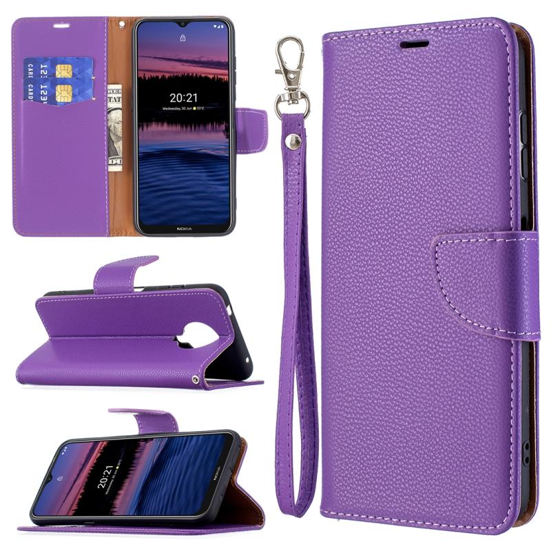 For Nokia G20 / G10 Litchi Texture Pure Color Horizontal Flip Leather Case with Holder & Card Slots & Wallet & Lanyard(Purple)