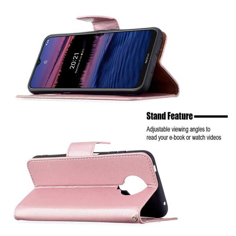 For Nokia G20 / G10 Litchi Texture Pure Color Horizontal Flip Leather Case with Holder & Card Slots & Wallet & Lanyard(Rose Gold)