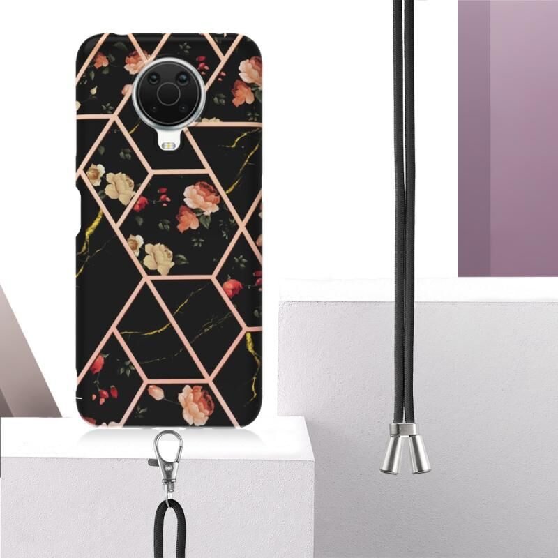Θήκη τηλεφώνου TPU με σχέδιο μαρμάρινου λουλουδιού και λουρί για Nokia G20 / G10 (Ροζ Λουλούδι)
