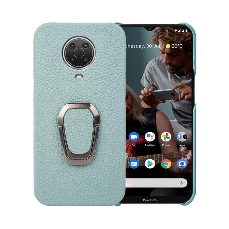 Για Nokia G20 Ring Holder Litchi Υφή γνήσιο δέρμα τηλέφωνο υπόθεση (Cyan)
