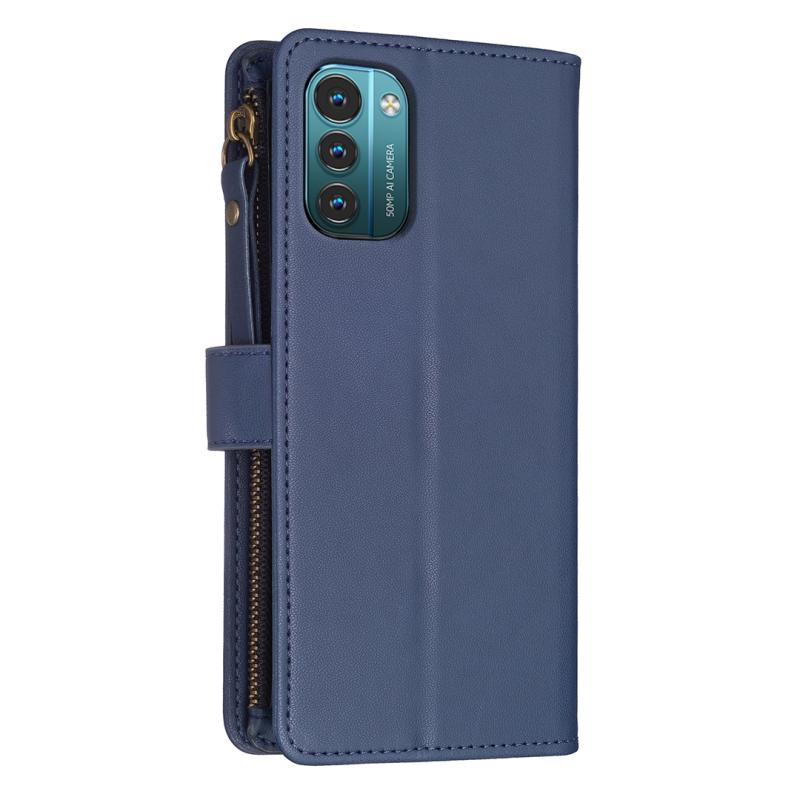 Θήκη τηλεφώνου τύπου βιβλίου από δέρμα με φερμουάρ και 9 θέσεις για κάρτες για Nokia G21 / G11 (Ανοιχτό Μωβ)