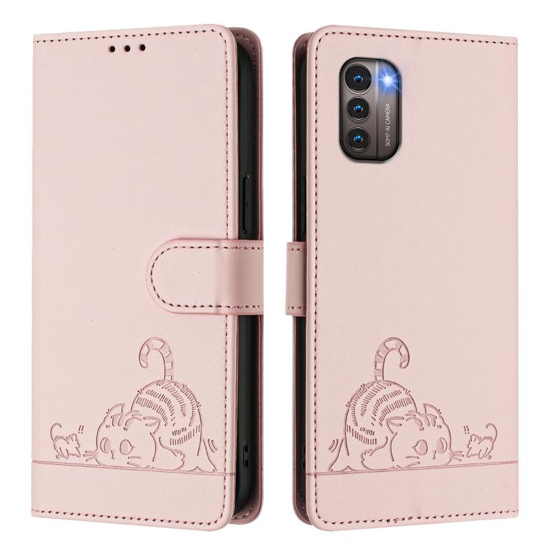 For Nokia G21 / G11 Cat Rat Embossed RFID Leather Phone Case with Lanyard(Pink)