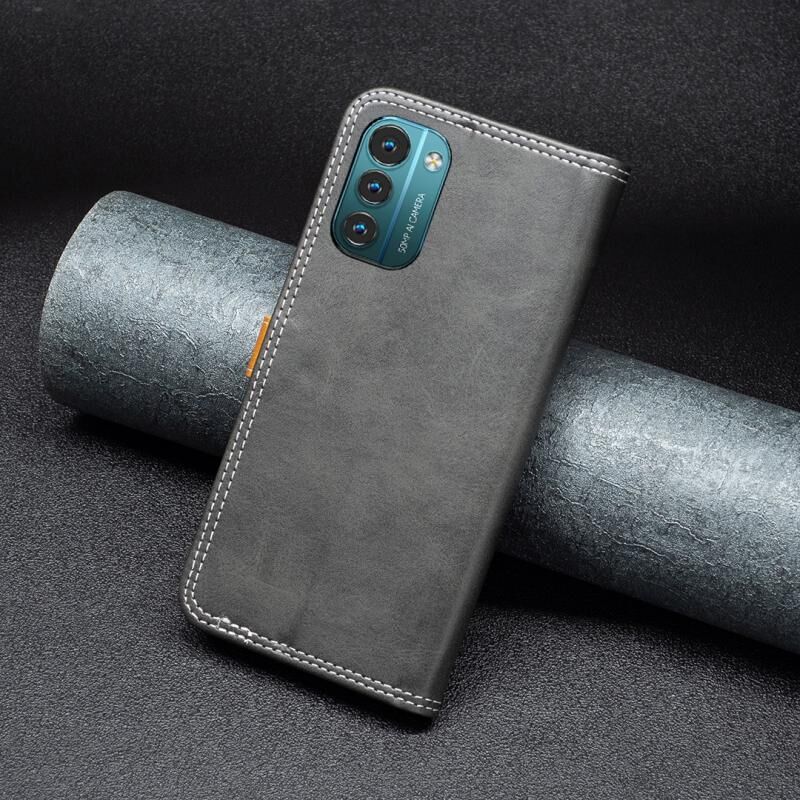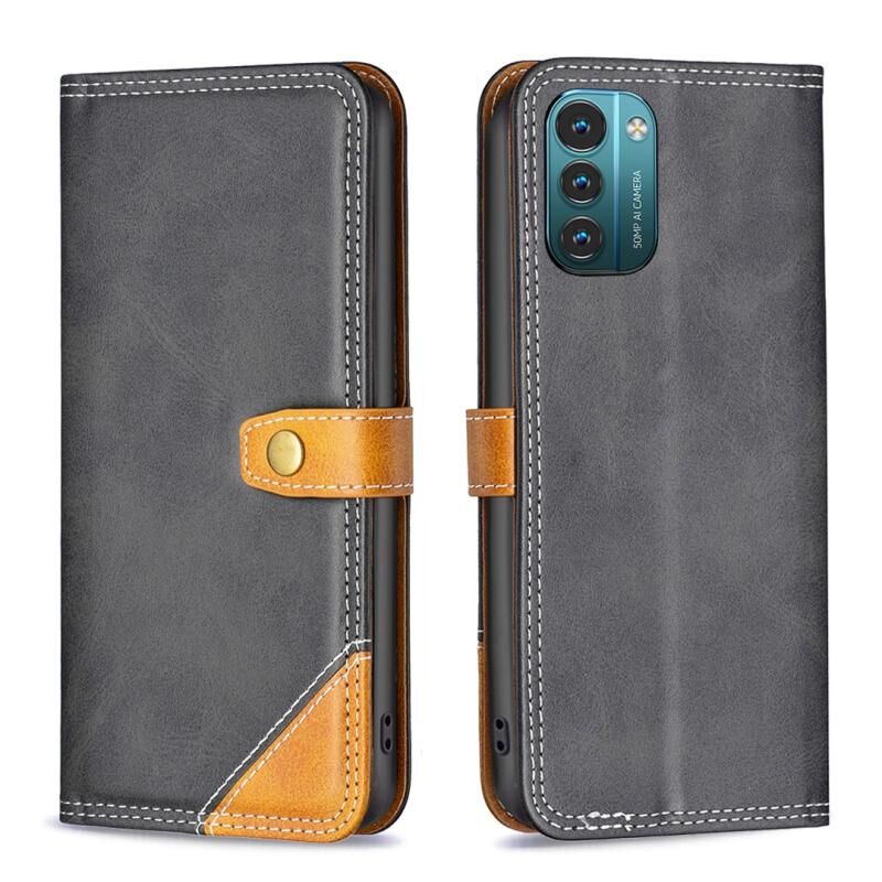 Θήκη τηλεφώνου από δέρμα με διπλή ραφή και αντιστοίχιση χρωμάτων για Nokia G21 / G11 (Μαύρο)