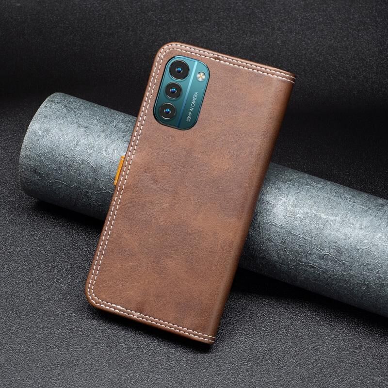 Θήκη τηλεφώνου από δέρμα με διπλή ραφή και αντιστοίχιση χρωμάτων για Nokia G21 / G11 (Μαύρο)