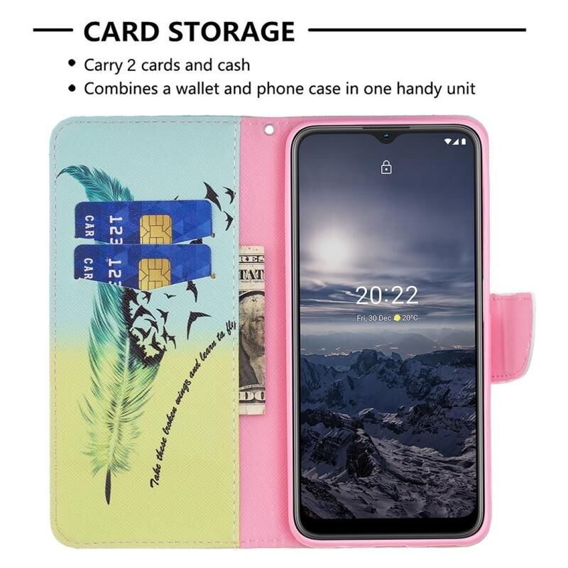 Θήκη τηλεφώνου από δέρμα με οριζόντιο άνοιγμα και πολύχρωμο σχέδιο για Nokia G21 / G11 (Φτερό)