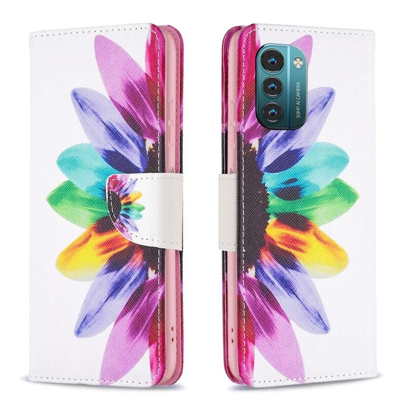Θήκη τηλεφώνου από δέρμα με οριζόντιο άνοιγμα και πολύχρωμο σχέδιο για Nokia G21 / G11 (Ηλίανθος)