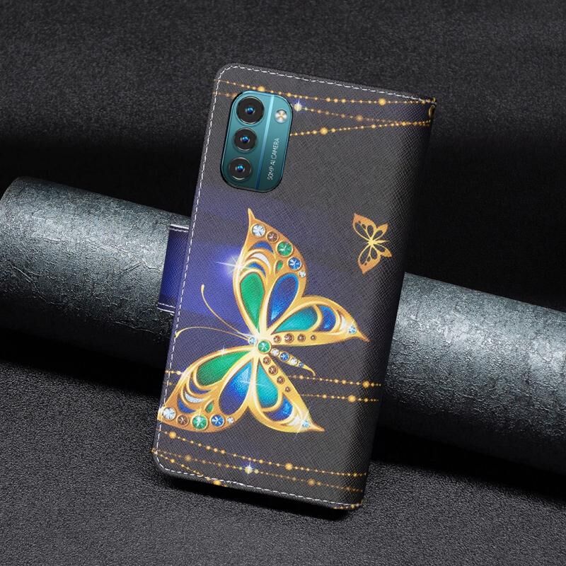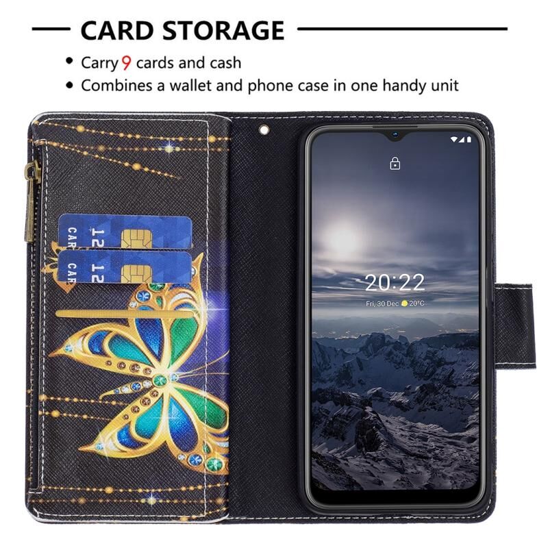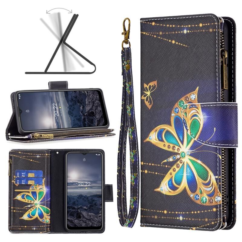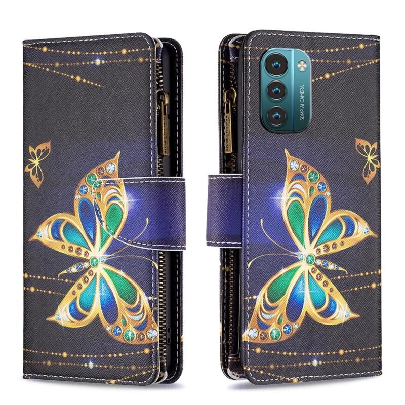 Θήκη τηλεφώνου από δέρμα με φερμουάρ και πολύχρωμο σχέδιο για Nokia G21 / G11 (Μεγάλη Πεταλούδα)