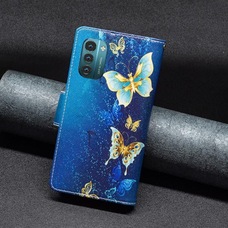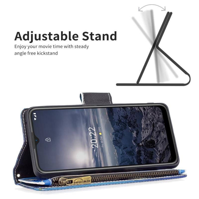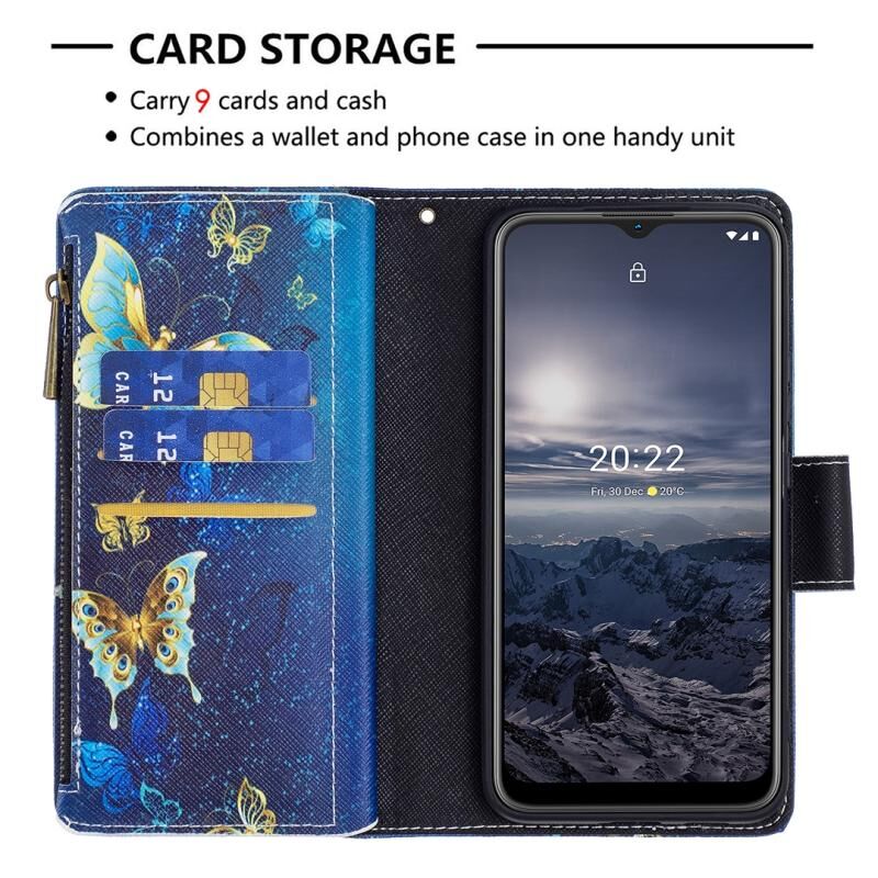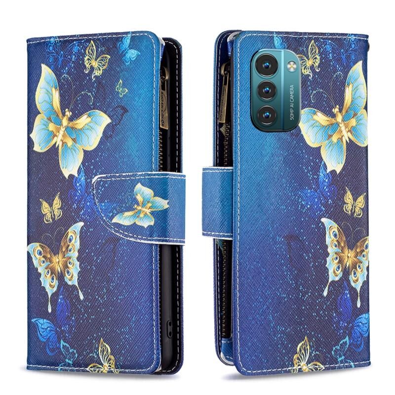 Θήκη τηλεφώνου από δέρμα με φερμουάρ και πολύχρωμο σχέδιο για Nokia G21 / G11 (Μωβ Πεταλούδα)