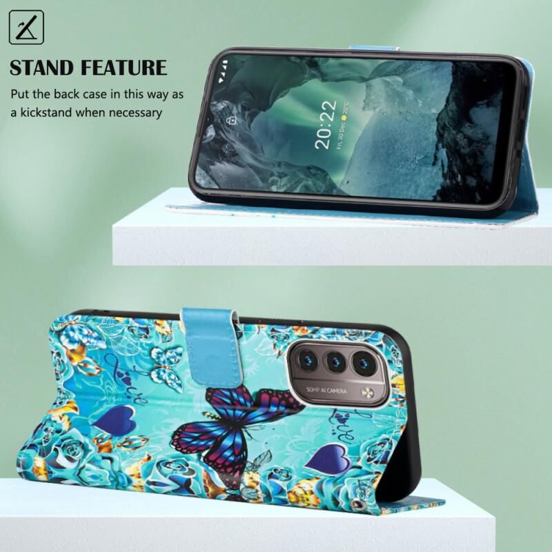 Θήκη τηλεφώνου από δέρμα με απλή ύφανση και έγχρωμο σχέδιο για Nokia G21 / G11 (Καρδιά Πεταλούδα)