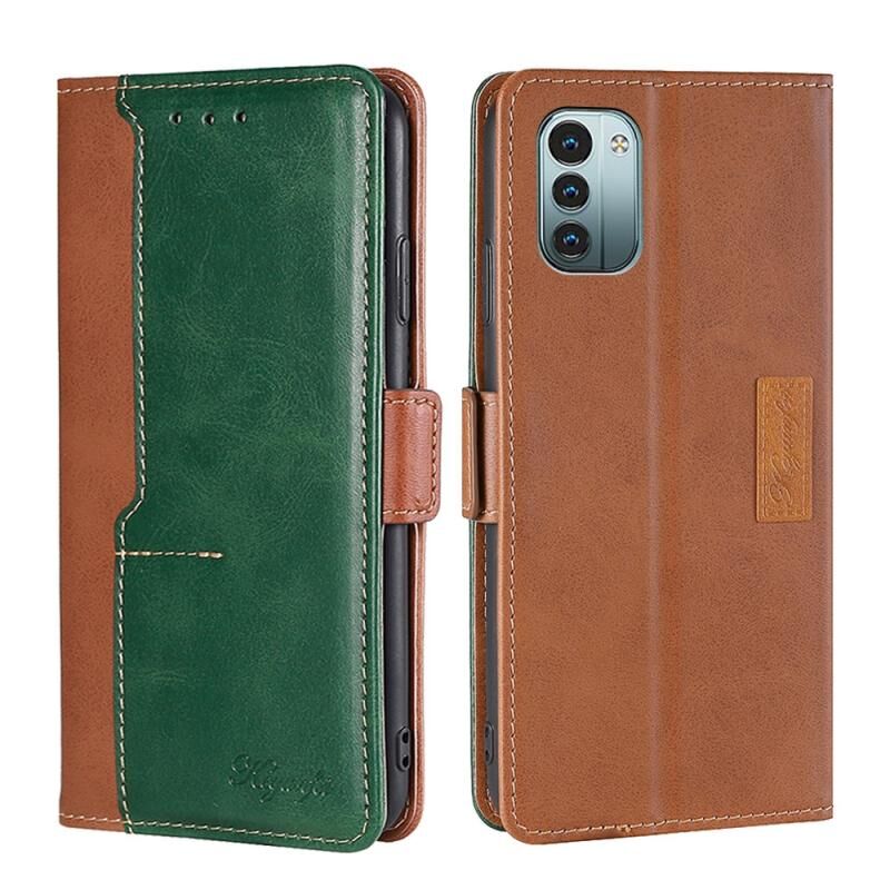 Για το Nokia G21 / G11 Αντίθετο χρώμα πλευρά πόρπη δερμάτινη θήκη τηλεφώνου (ανοιχτό καφέ + πράσινο)