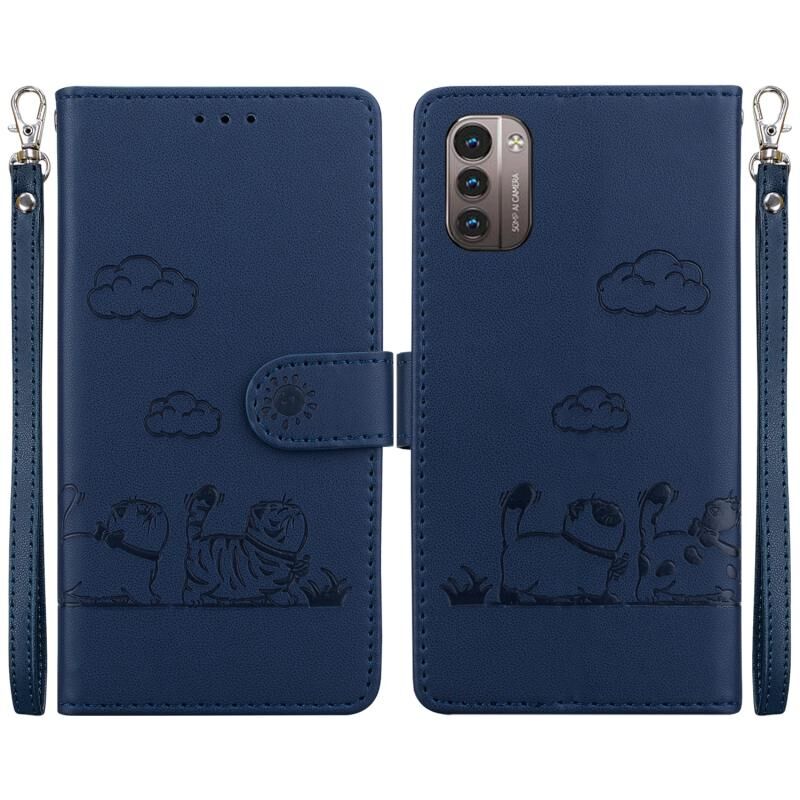 Θήκη τηλεφώνου από δέρμα με χαριτωμένες γάτες RFID για Nokia G21 / G11 (Χρυσορόδινο)