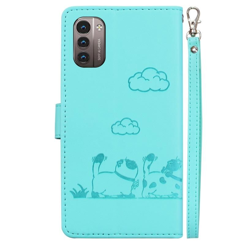 Θήκη τηλεφώνου από δέρμα με χαριτωμένες γάτες RFID για Nokia G21 / G11 (Χρυσορόδινο)