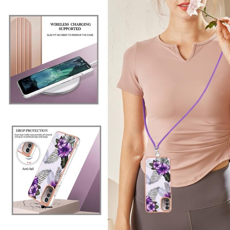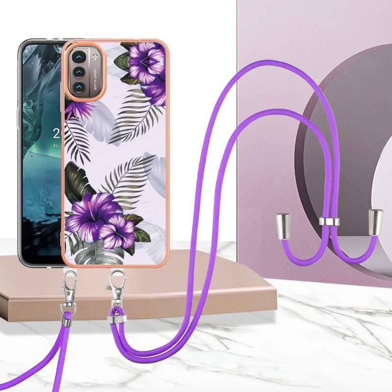 Θήκη τηλεφώνου για Nokia G21 / G11 με επιμετάλλωση IMD TPU με κορδόνι (Ροζ Λέπια)