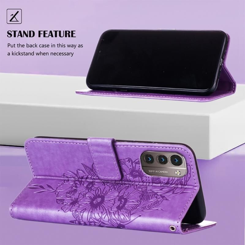 Θήκη τηλεφώνου δερμάτινη με ανάγλυφο σχέδιο πεταλούδας για Nokia G21 / G11 (Γκρι)