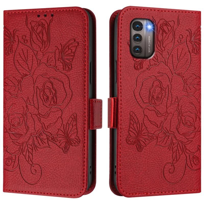 For Nokia G21 / G11 Embossed Rose RFID Anti-theft Leather Phone Case(Red)